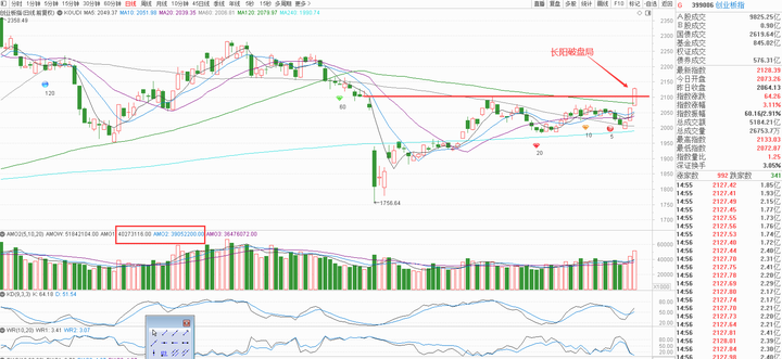 上证今天无明确多空意义,明天如果收上影线更长实体更小的阳线,三天会成为步步为营或者大敌当前,现在没发生,明天再谈,不过在今天成交量增加和结构有转好的情况下来说,昨天那一根就有机会成为长阳破盘局,这点随着之后的成交量和结构变化再进一步解读
