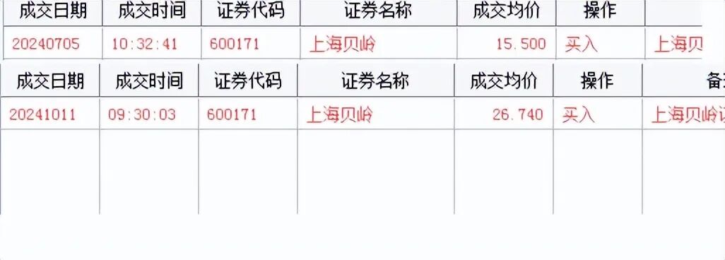 去年10月两次对上海贝岭的买入