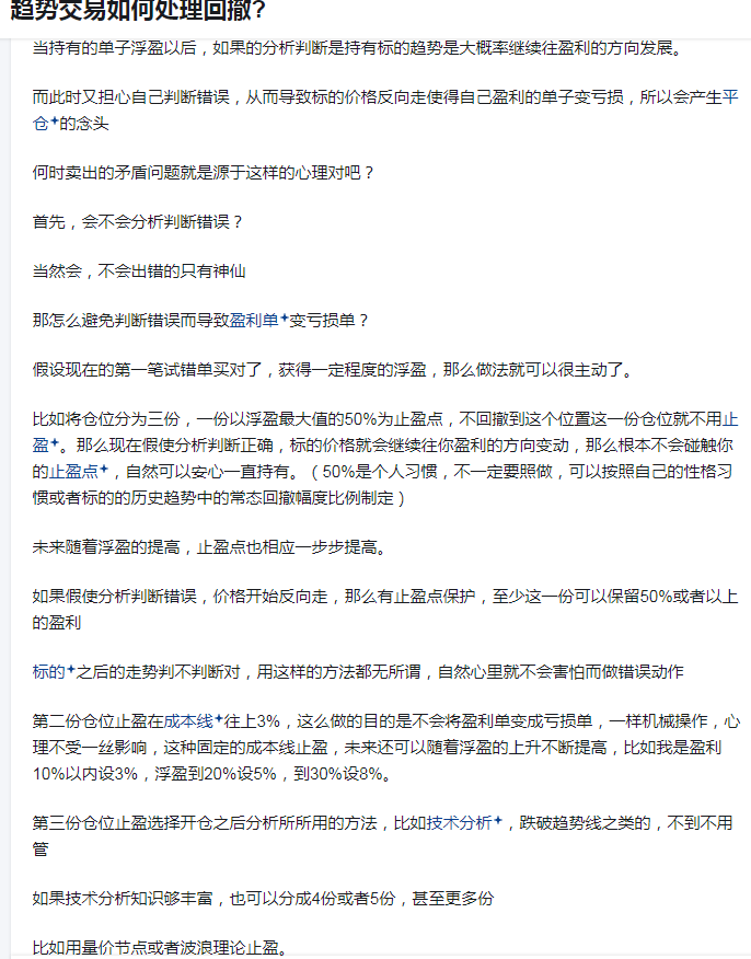 趋势交易如何处理回撤?