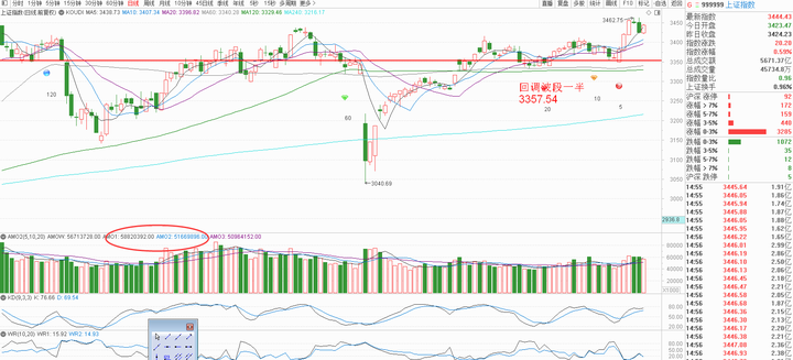 成交金额角度,两个指数都较昨日微微缩量,因为五日均量开口速度过快,两个指数今天略微差一点才到上涨趋势基准量