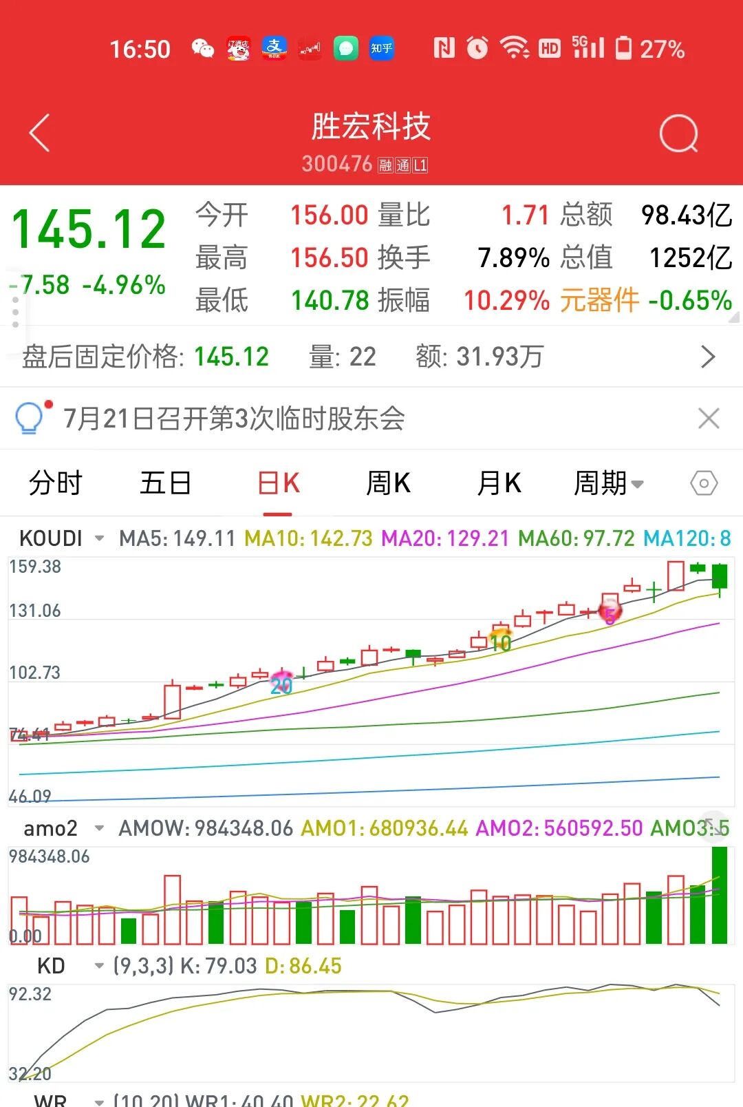 现在背离过高,分仓止盈可以三天不过高,五天不足上涨趋势基准量止盈。可以跌破最新的量价节点138.5止盈等等,设的越多,你的‘容错’空间就越大