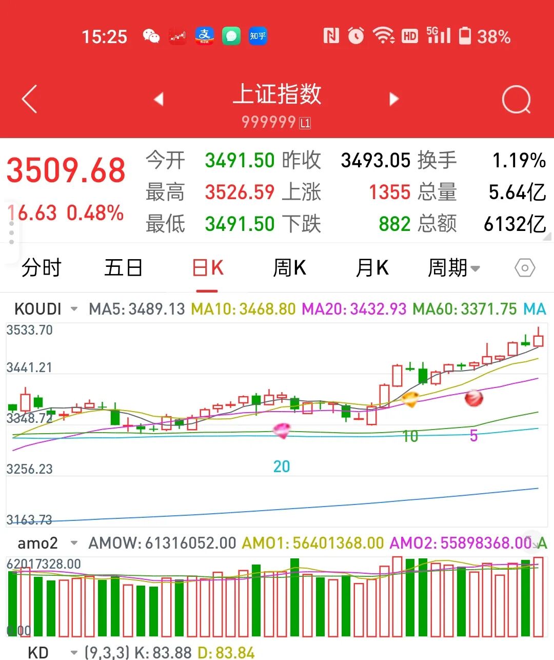 成交金额角度,上证在金融的发力下,大于上涨趋势基准量,五日十日均量金叉,短线行情自然大概率不是盘整就是上涨