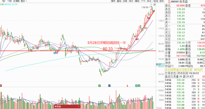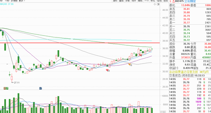 立讯还未突破回调波段中点,现在还是左侧阶段,类似没有突破80.33的新易盛,突破21.73的工业富联那样
