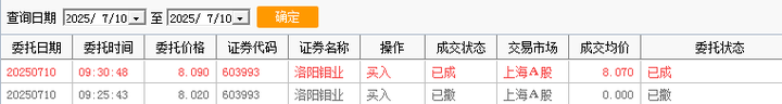 所以个人认为是不会再有跌回7.56元的机会,昨天开盘如计划挂了月线8.02的单子结果没能成交,撤单成交的价格是8.07