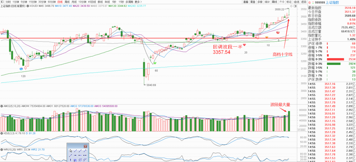 成交金额角度,上证今天是从4月7日以来的波段最大量,所以若是不过今天高点直接开始回调