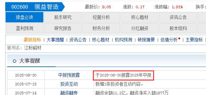 这点可以从公布半年报的时间有一定预期