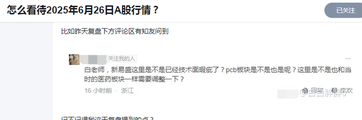 于是提问这两块是不是走完了的朋友又多了起来(主要以新关注的朋友为主)