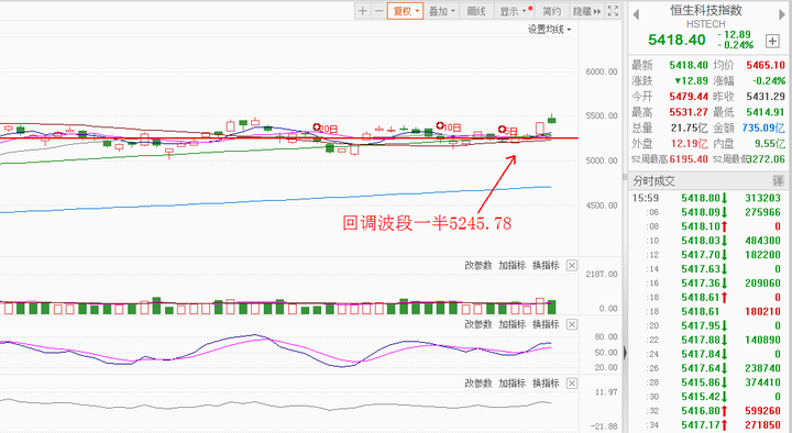 现在恒生科技除年以外五个周期的均线都纠结在一起,也就是说短时间没有趋势方向,还是震荡盘整