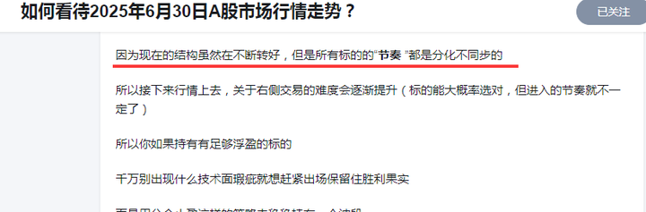 2025.6.30A股分析(对指数持续看多,右侧交易的节奏浅述)