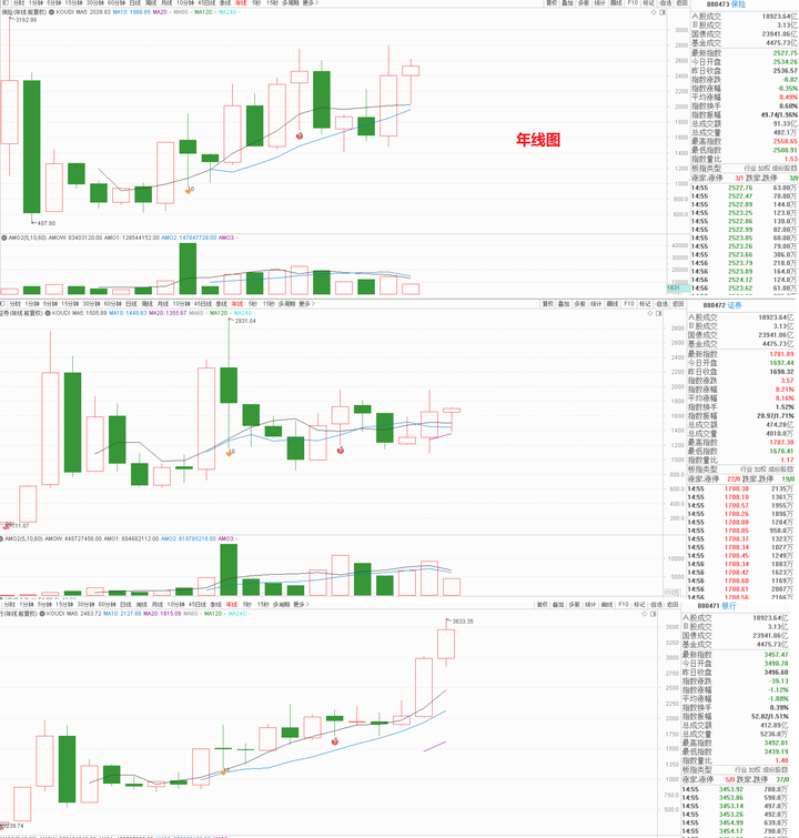 三个板块年线周期的趋势,也是截然不同的