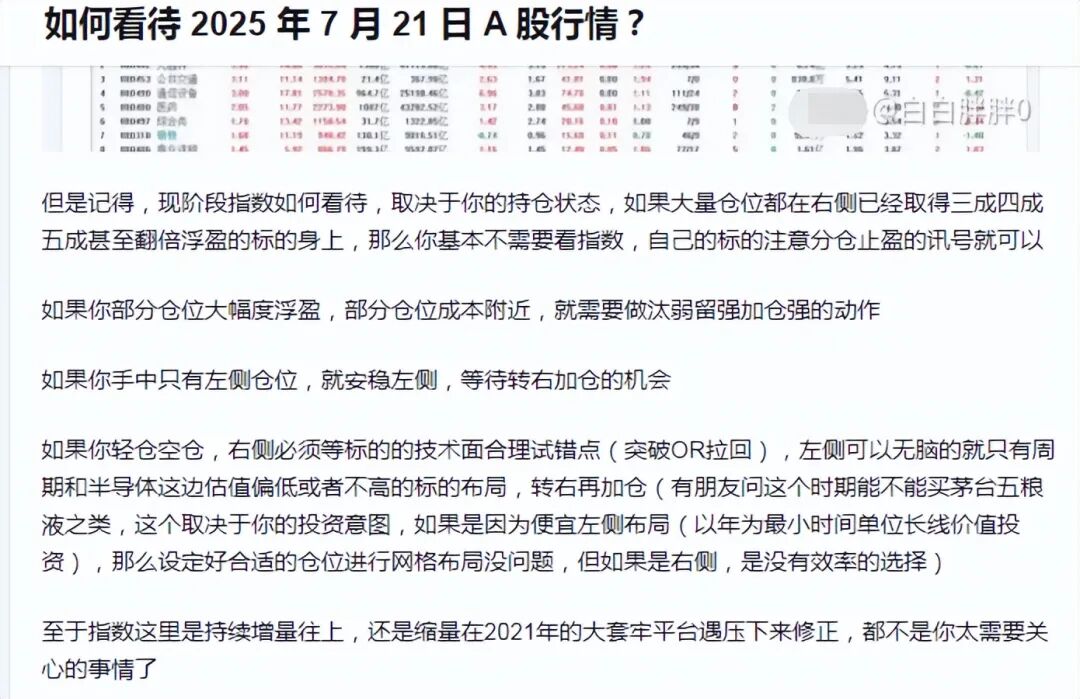 随着指数越来越高,今天有必要重点和大家说一下现在操作的问题(因为还有不少朋友的反馈依然是,这一波行情上来踏空了,心里没谱,但是又不愿意耐心的左侧布局现在适合布局的标的,频繁的换股进进出出,结果最近亏损反而不小)