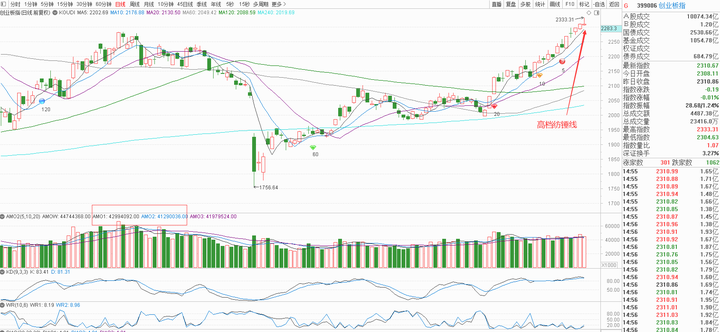 创业板缩量,KD同步新高未背离,所以2333.31的高点,之后也会越过