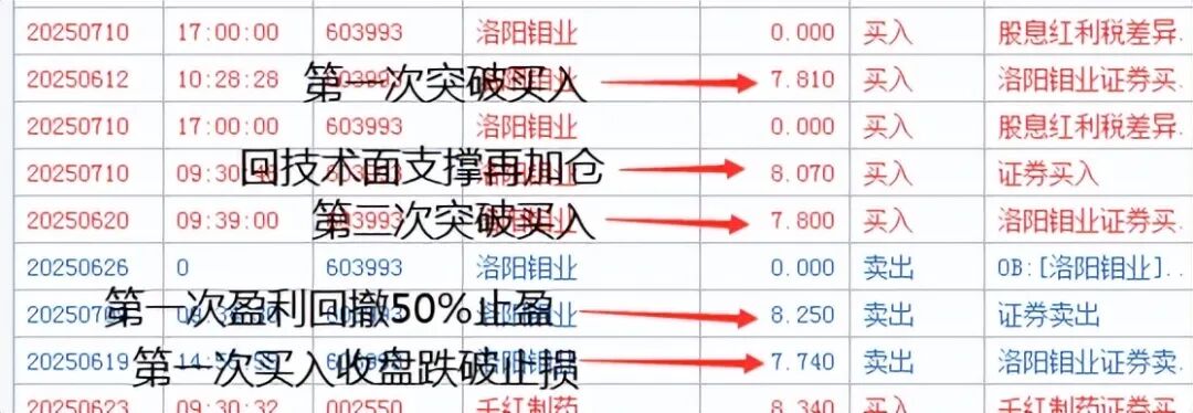 这天复盘提到买洛阳钼业回调波段一半的突破