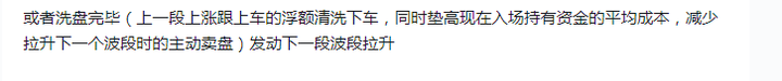 或者洗盘完毕(上一段上涨跟上车的浮额清洗下车,同时垫高现在入场持有资金的平均成本,减少拉升下一个波段时的主动卖盘)发动下一段波段拉升