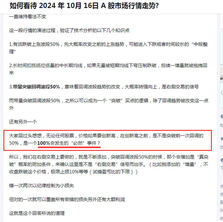 2024.10.16A股分析(买回调波段50%带量“突破”的逻辑)