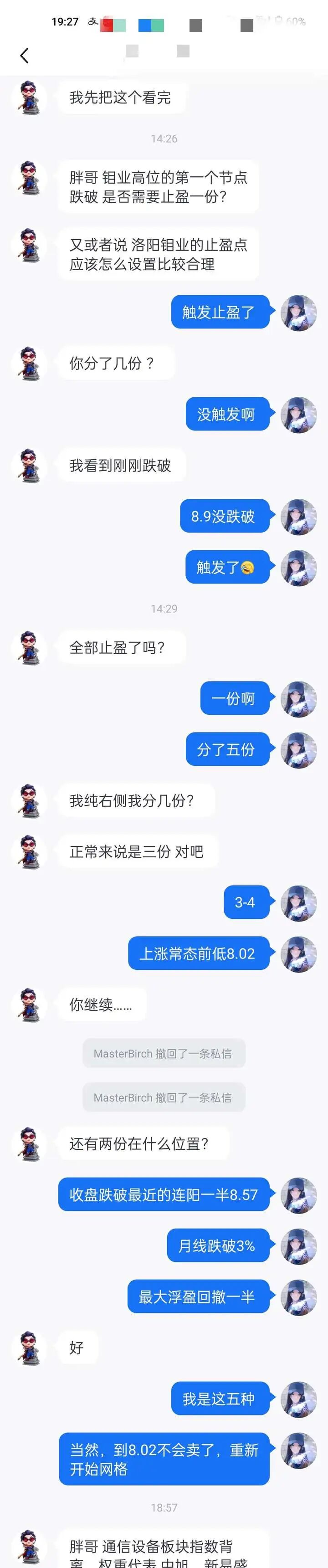 然后操作,比如今天下午和一位知友谈到了关于洛阳的分仓止盈策略