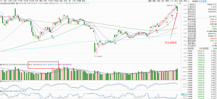 K线角度,两个指数都是空头吞影线,短线偏空解读