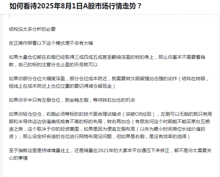 你如果有足够的成本优势,分仓止盈就行了,别的一丝一毫都不用多想