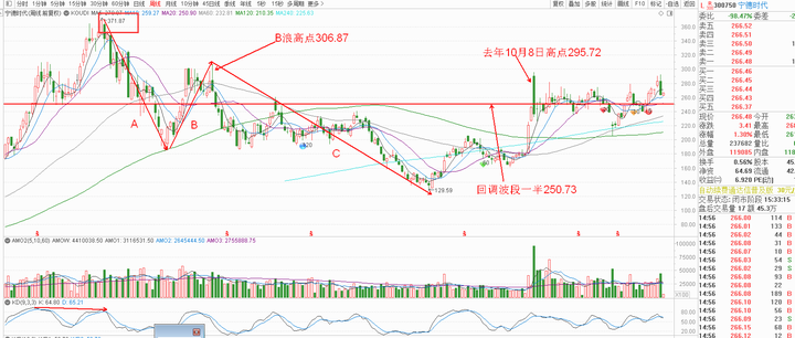 如果只看最近小波段的回调波段一半已经突破,那么去年10月8日波段最大量的高点295.72,就是大概率这一波就会上去突破的