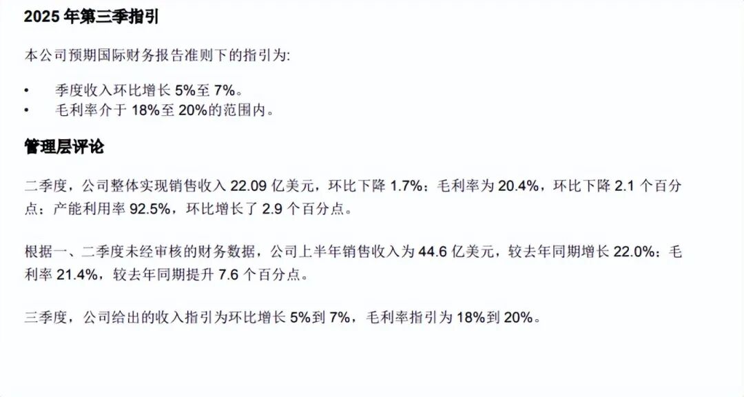 然后来说说中芯国际的二季报业绩说明