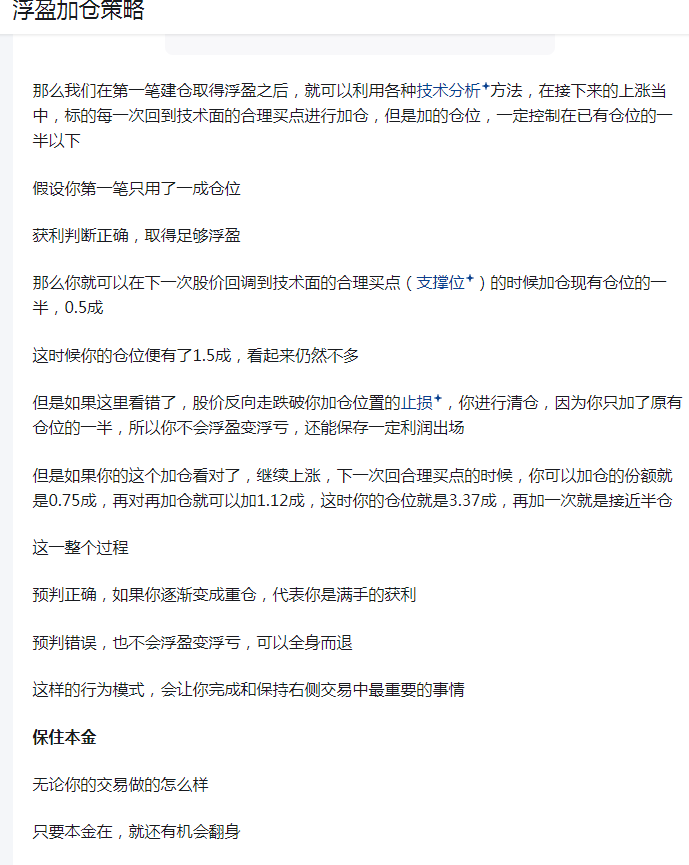 对于加仓这门手艺而言,实际就是一次独立的新右侧交易,股价的“波段”上涨不会一蹴而就,必然有来来回回,你突破买进或者回调技术面买进试错如果和你原先持有的仓位是同一个标的,那就是一次浮盈加仓