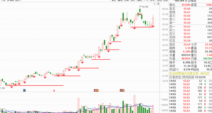 然后关于洛阳,复联,沪电,东山精密等等大家拿了一个大波段上来的股票,现阶段的分仓止盈操作该怎么设定