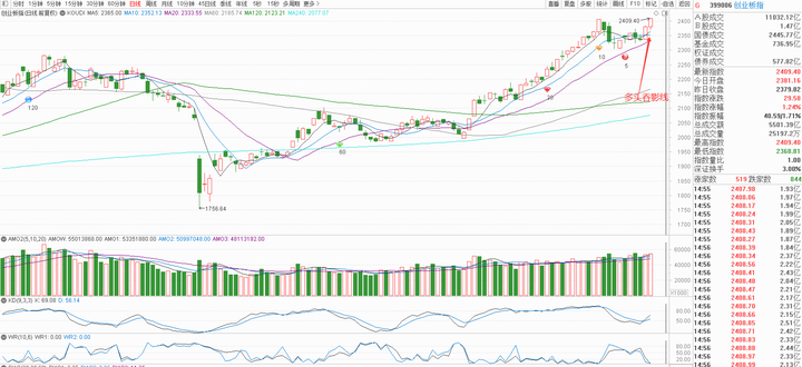 所以创业板整体没有盘中出量,最后也得以收中阳