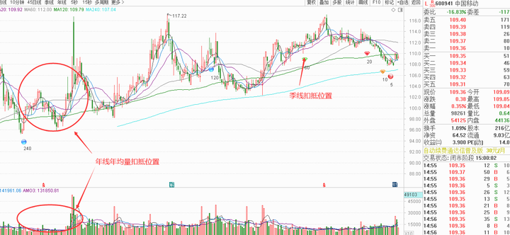 中移动的年线并不是一个理想的右侧交易选择