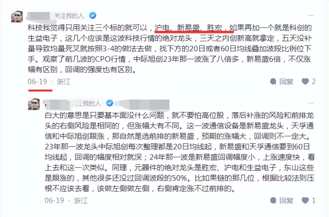 比如这位盆友6月19日说的胜宏科技,沪电,新易盛