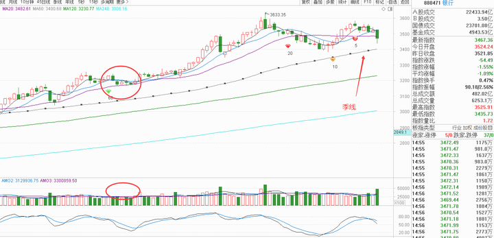 以现在的技术面而言,明确的技术面支撑是季线,如果到极限的时候持续缩量低于上涨趋势基准量,就会被暂时下弯的短期均线压制暂时跌破季线,有量再被拖拽回来