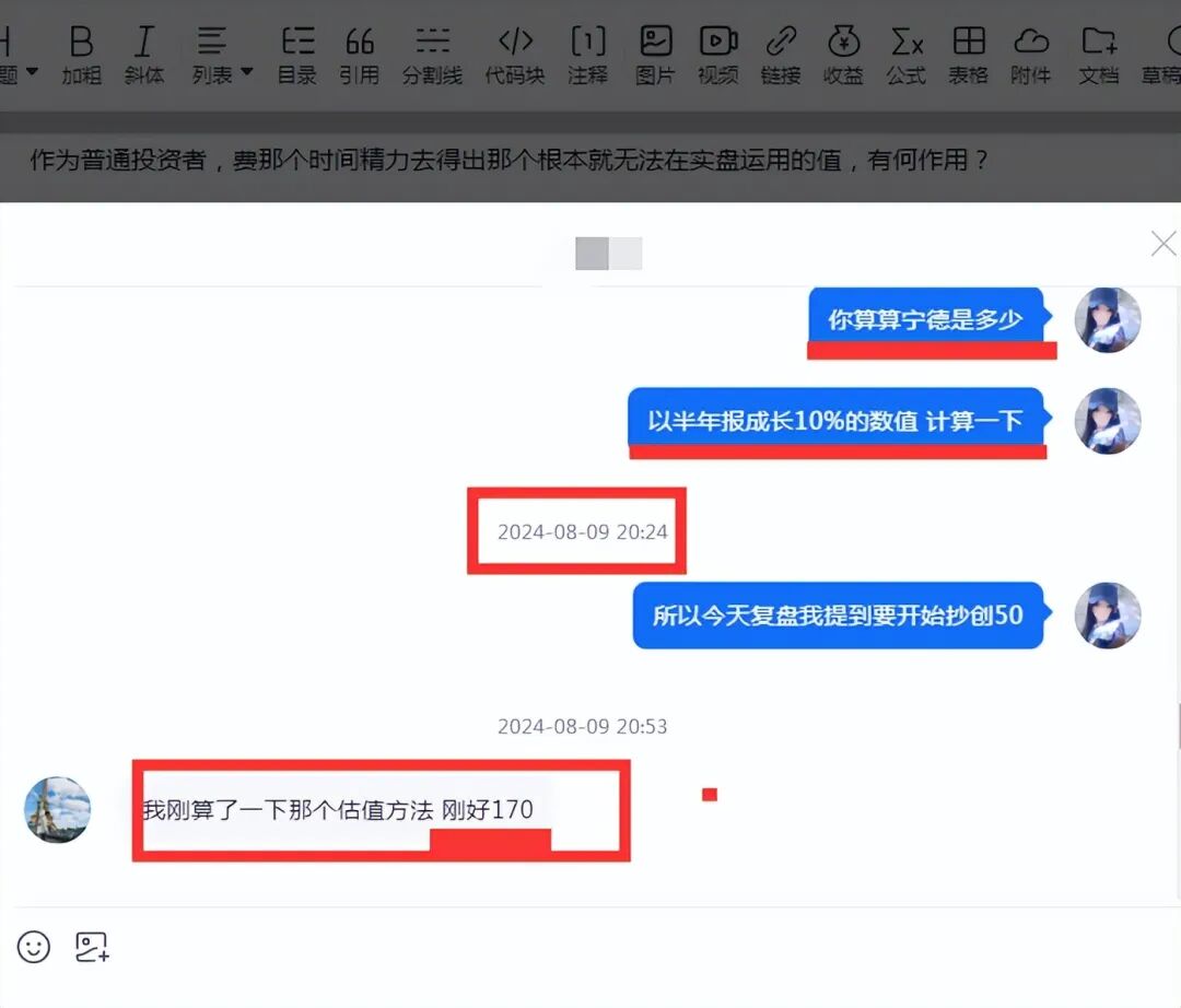 当天晚上的复盘我回答了一个知友的问题,并让他用我这个“计算公式混乱”的方法以宁德半年报成长10%的数值计算一下基本价值线是多少