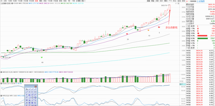 K线角度,上证收多头吞影线,偏多解读