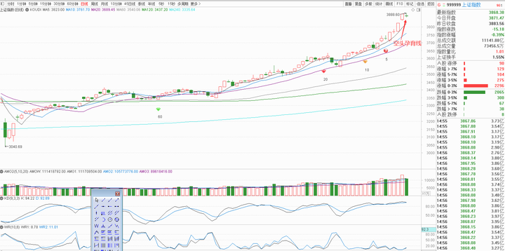 上证今天交代了3883.56,但因为今天3888.6KD同步新高未背离