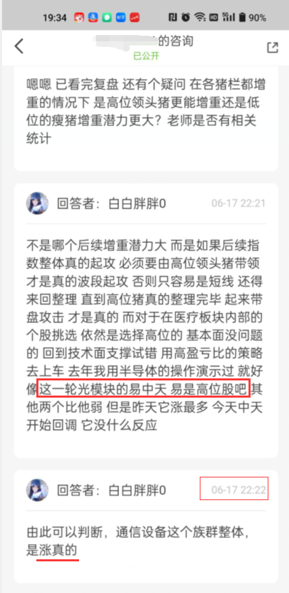 6月17日,因为通信设备当时的指标股易中天中的易一直保持强势,所以是“涨 真 的”