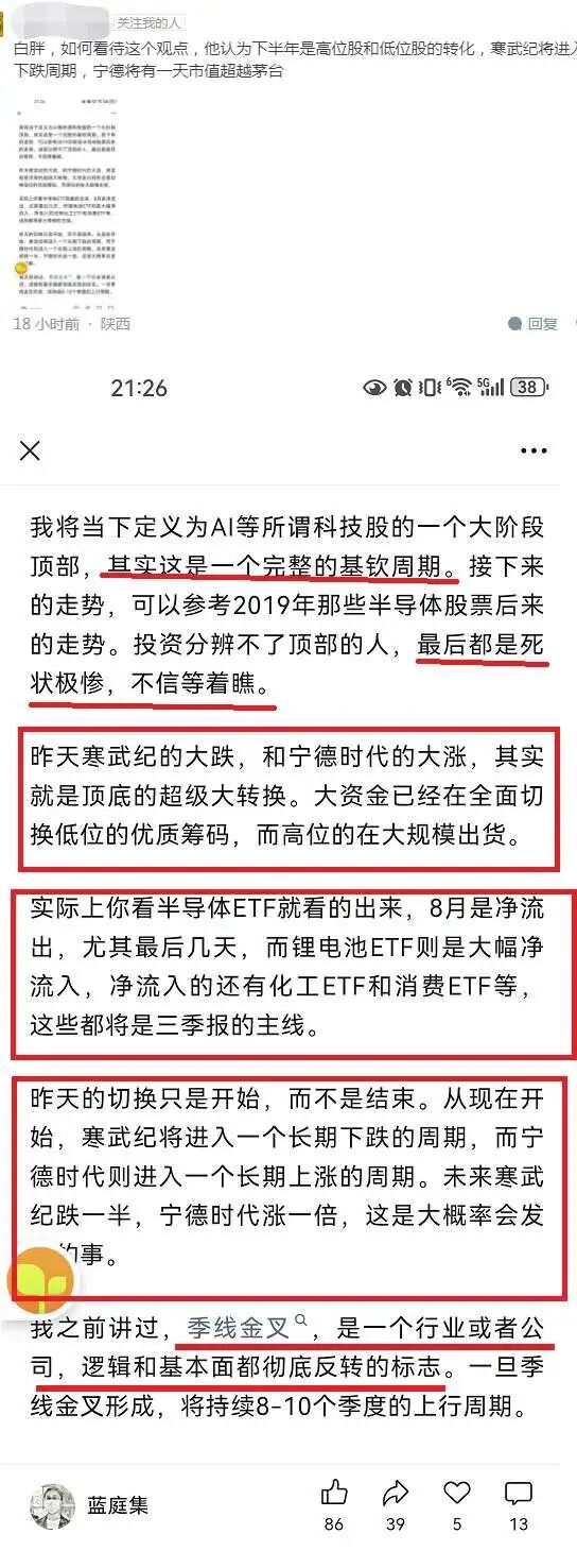正好周五复盘下方,有知友发了一个财经博主的观点