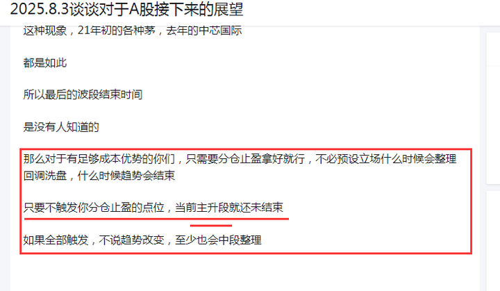 分仓止盈策略即使这里真的趋势反转,我们顶多少赚一点,但没有触发,我们就有继续赚到波段后面利润的机会(不要觉得在一个标的上赚到三倍五倍是一件不可能的事(游资博弈那种疯涨不算,没法预判,也做不到))