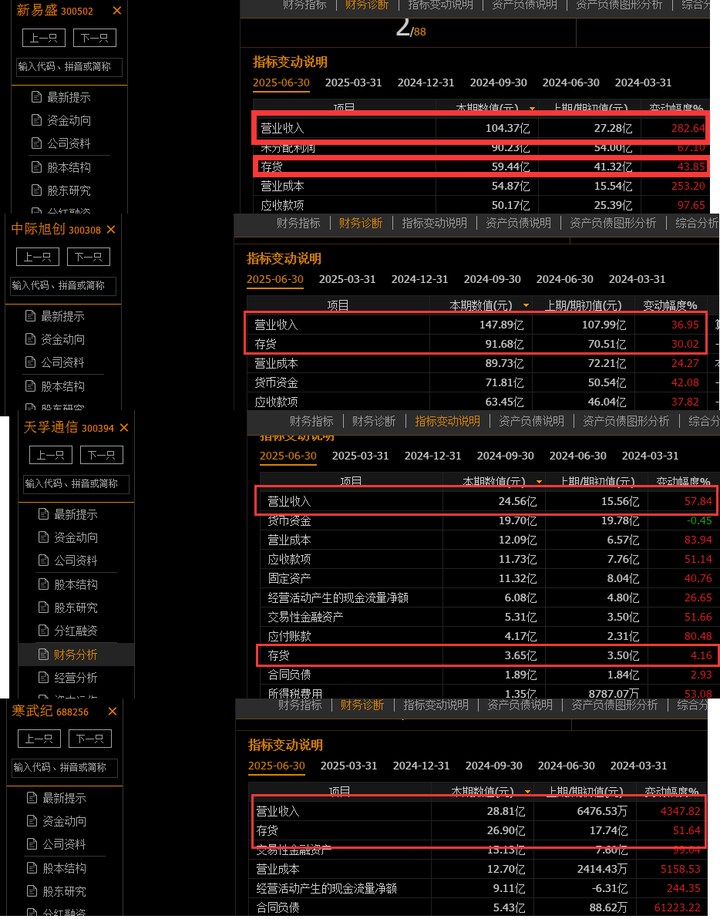 来来来,你让任何一个懂基钦周期的人看完这些企业的半年报的营业收入和存货的同比成长幅度(不是单一企业,而是整个产业链)能得出这些行业要进入“ 被动补库存 ”的阶段的结论?