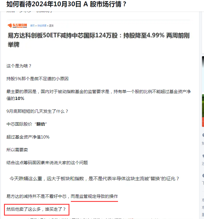 比如去年10月30日谈易方达减持中芯