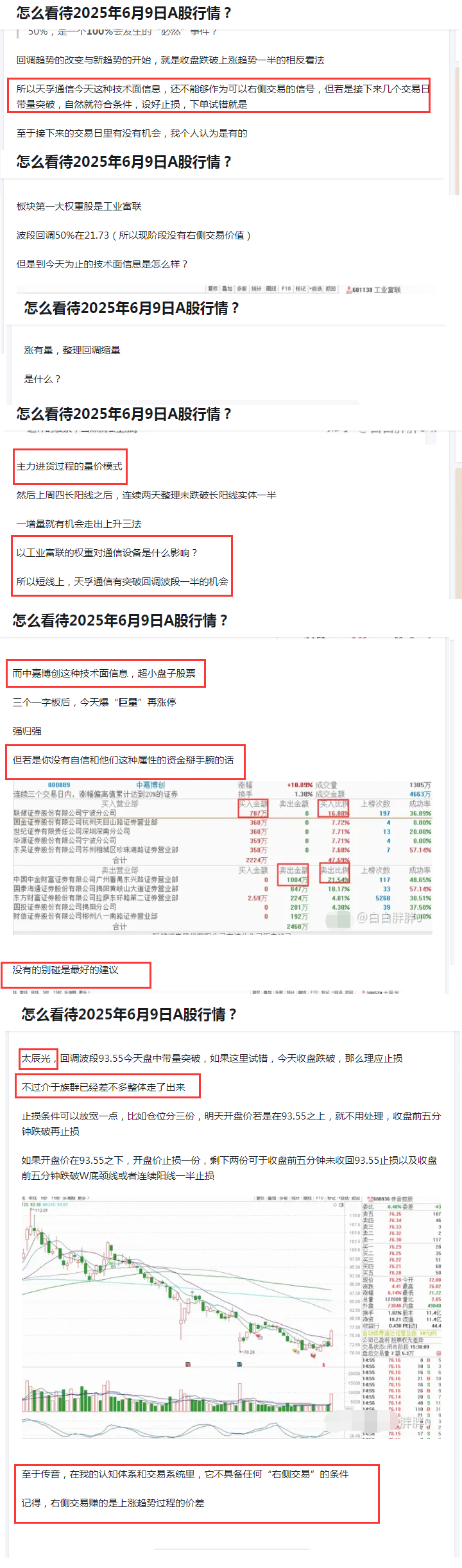 2025.6.9A股分析(通信设备内不同技术面节奏的个股怎么看待)