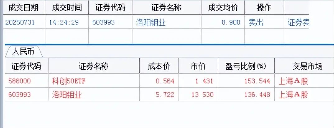 就比如之前洛阳钼业跌破量价节点这样一个技术面的卖讯我按计划分仓止盈一份一样