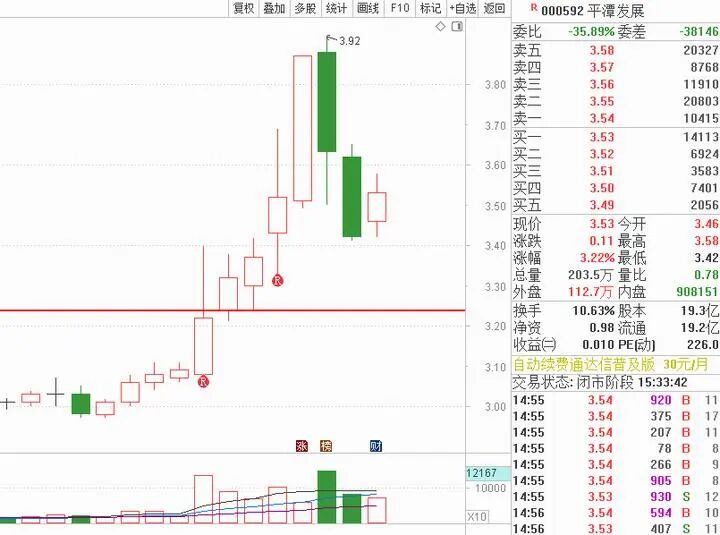 如果是我的话还会设一份连续阳线一半收盘跌破的止盈,3.42,不过到今天收盘又在这之上了,可以缓缓再看