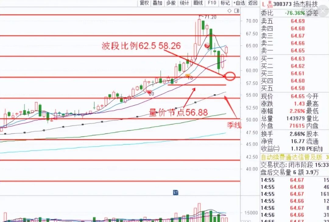 或者拉回到62.5%,技术面支撑是量价节点56.88,时间足够长季线跟上来也可以是季线(再过十几个交易日的样子)
