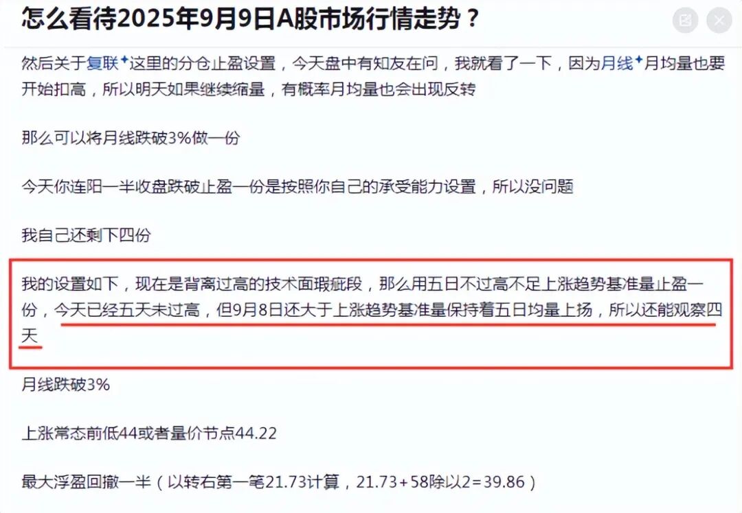 对于其他持仓状况的人,没有必要,所以你们没问,我自然也没说(当天问的人问题是分仓止盈怎么设)