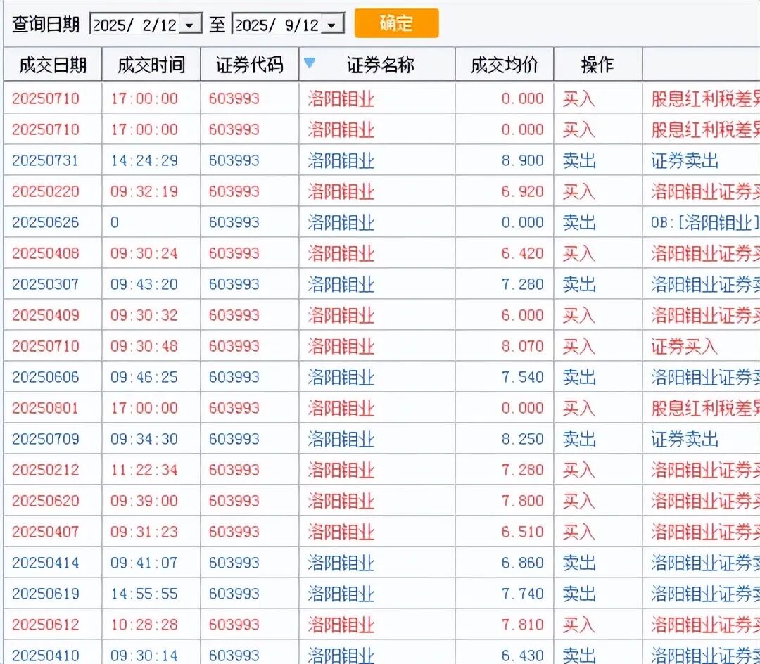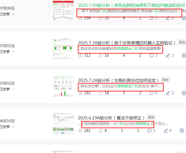 然后在6月~7月的复盘,屡次提及,洛阳钼业转右侧交易的加仓点7.81