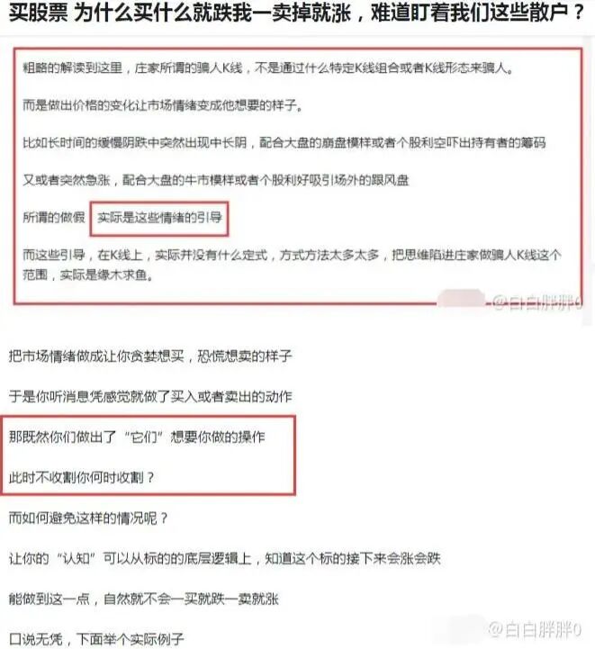 说穿了,就是不知道股价为何涨为何跌,自己买的标的接下来大概率会涨会跌,就直接听消息凭感觉被自己的情绪操控来操作
