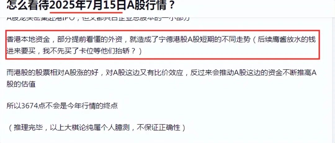 以及H股那边外资与这边提前看懂的资金提前卡位造成的溢价