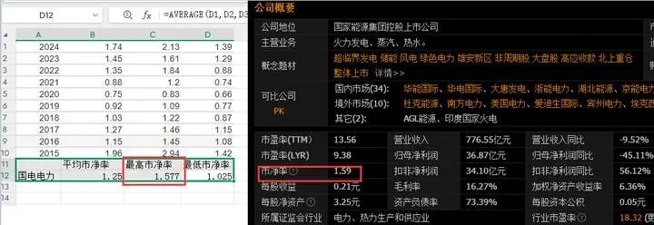 而国电现在已经处于高估状态