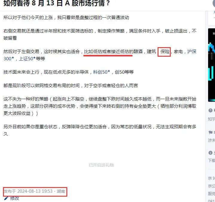当时没具体说,但用的是和上面判断银行低估一样的方法