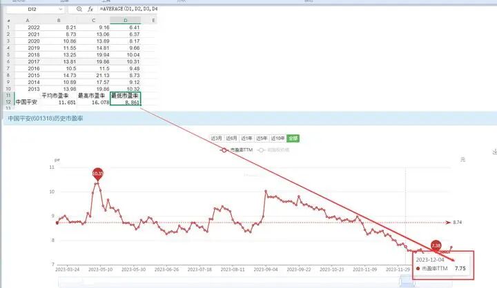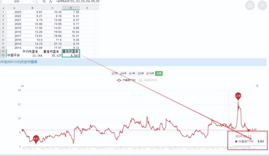 我们来看用同样方法对保险用PE估值的例子
