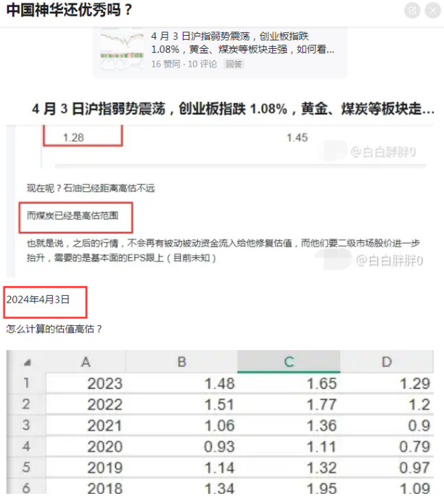2024年4月3日,中国神华比十年最高估值的平均水平还要高30%